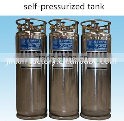 Self-pressurized liquid nitrogen tank produces pressure by evaporation of little liquid nitrogen so that liquid nitrogen will exhaust itself and complement other containers.