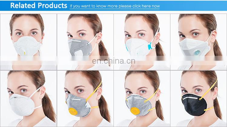 | Features | 1. Disposable, single-use, breathable, light and environment-friendly; 2. Two ear loop design with ultrasonic welded dual point attachment helps provide a secure seal; 3. Soft foam nose cushion for easy and comfortable fit; 4. Adjustable nosepiece for extra comfort; 5. Breathing valve enables easy breathing and helps avoid moisture fogging inside the mask; 6. Activated layer helps fiter odor and smell; 7. At least 95 percent filtration efficiency against certain non-oil based particles. |