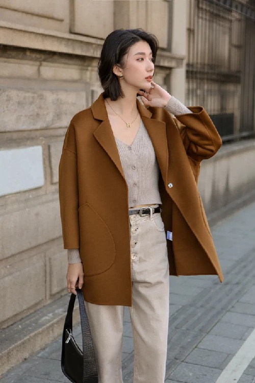 The versatility of the wool coat makes it unlimited possibilities in terms of matching. Want to create intellectual elegance, you can choose a tailored black wool coat, inside the high-necked sweater and tight pants, and then with a pair of pointed heels, instantly enhance the gas field; and want to show the casual side of the casual side of the loose wool coat can be combined with jeans, sneakers, simple but without losing the sense of fashion. In addition, the embellishment of accessories is also the key to enhance the overall look, a delicate scarf, a stylish hat or a small handbag, can add a touch of color to your winter wear.