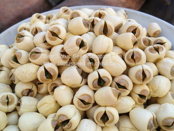 Compared to the white lotus seeds obtained through the grinding skin, another way to obtain the white lotus seed is to pick the green lotus seeds that are not yet fully mature, remove the skin by hand, then pell the inner skin off, remove lotus seeds core, and dry. this kind of lotus seed what we called "handmade white lotus seed".