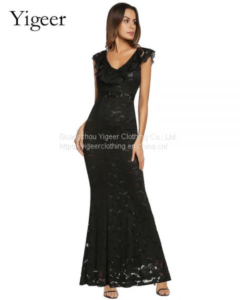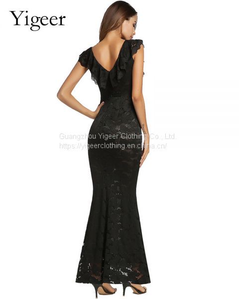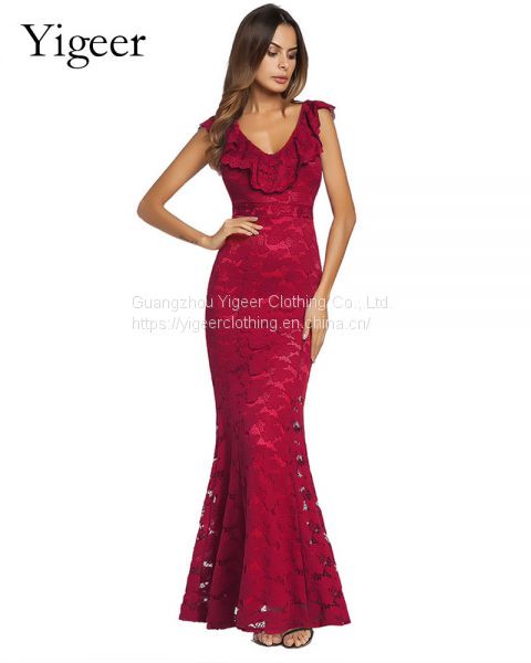 Product Name | Ruffled V-neck High Waist Sheath Lace Mermaid Dress |