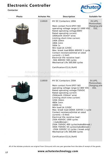 | Model No.: | 110020 | Description: | HV DC Contactors 100A |
